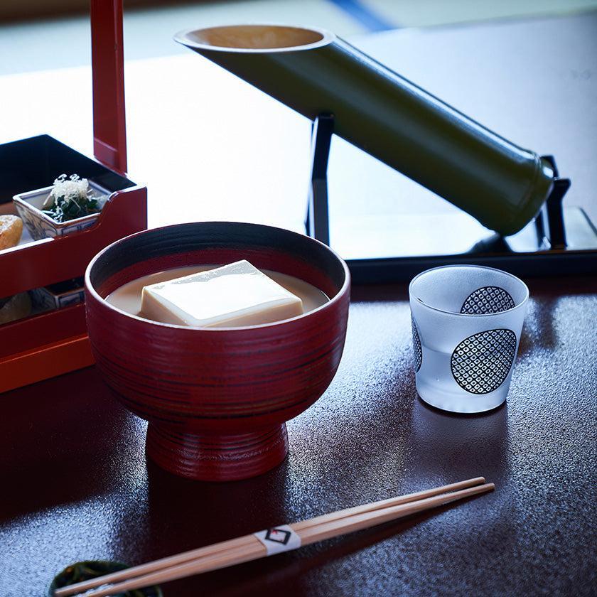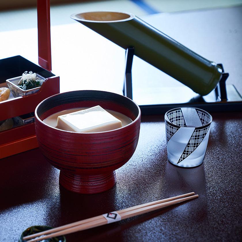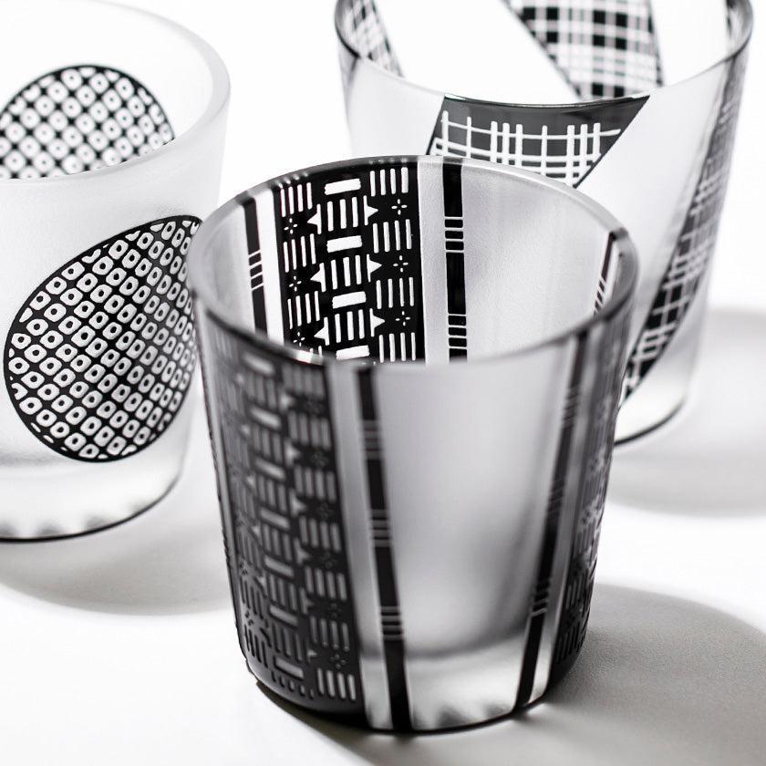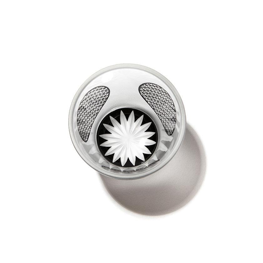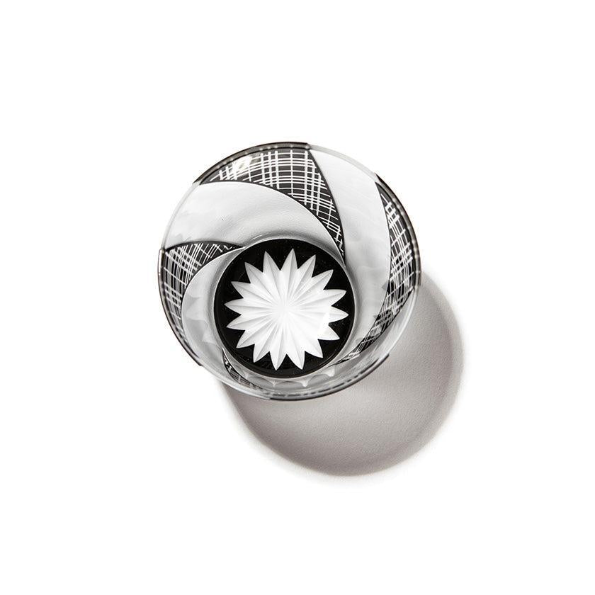 쿠로코몬은 숙련된 장인이 손으로 불어서 만든 이중 유리 그릇에 "가노코", "미스지 코시(삼중선 검사)", "와리츠케(배분)" 등 전통적인 에도 고몬 문양을 꼼꼼하게 새긴 시리즈입니다. 에도 고몬의 세련되고 섬세한 문양과 차분한 검정색 오버레이 유리의 조합이 아름다운 컬렉션을 만들어냅니다.