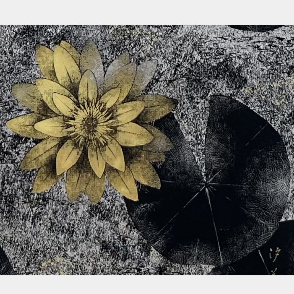 Depicting three water lilies—large and small—whose floral meanings include "trust," "kindness," and "purity," this piece symbolizes parental love and family harmony.
