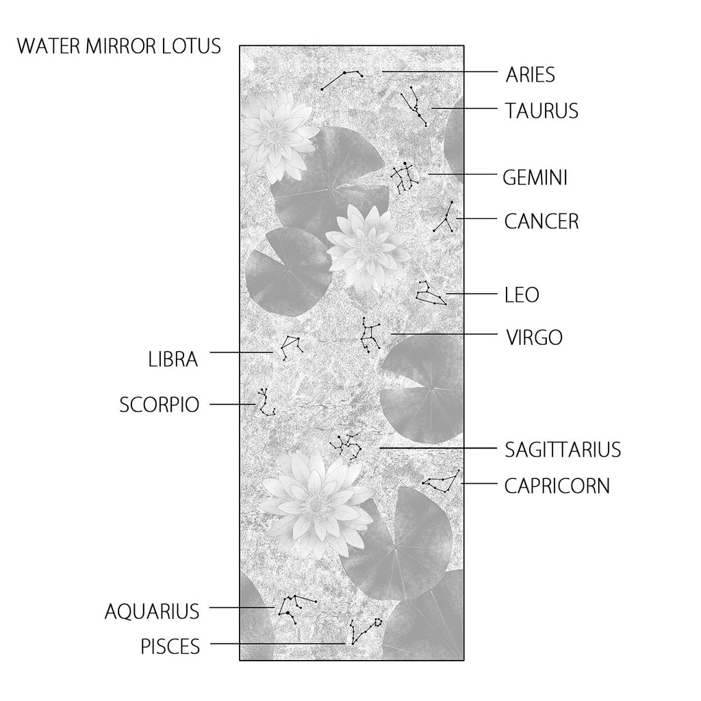 The flowers, radiating a divine glow with pure gold leaf, and the water's surface, shimmering with aluminum silver leaf, feature the twelve zodiac signs.