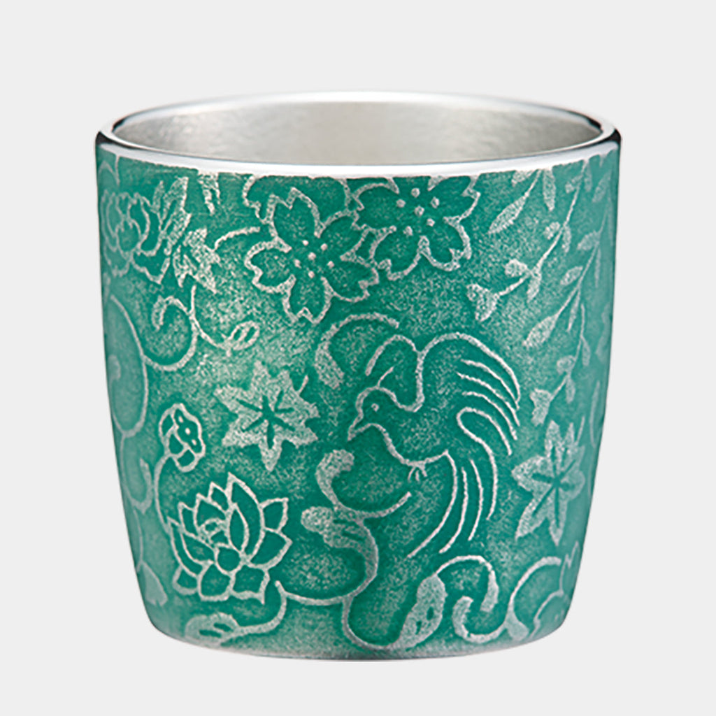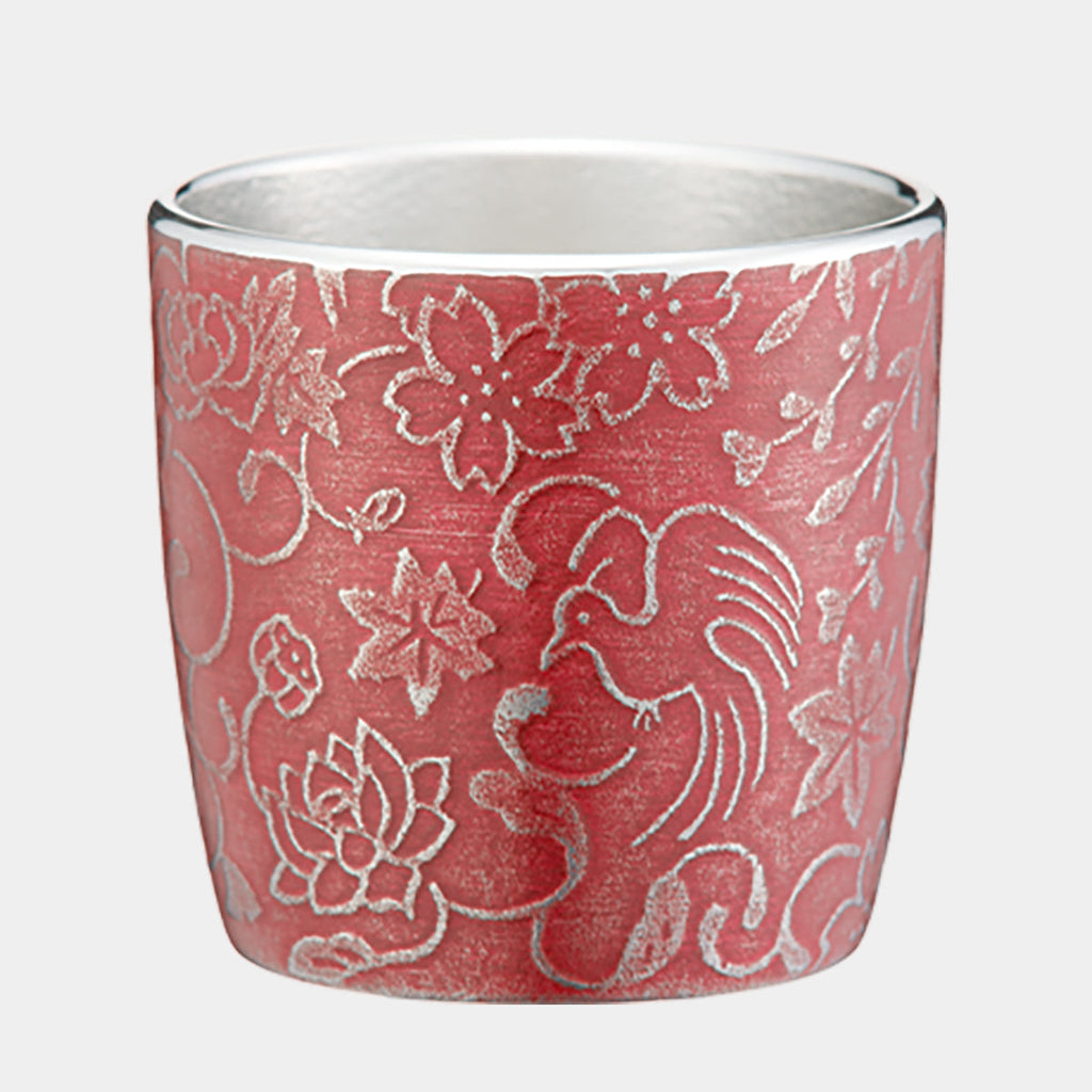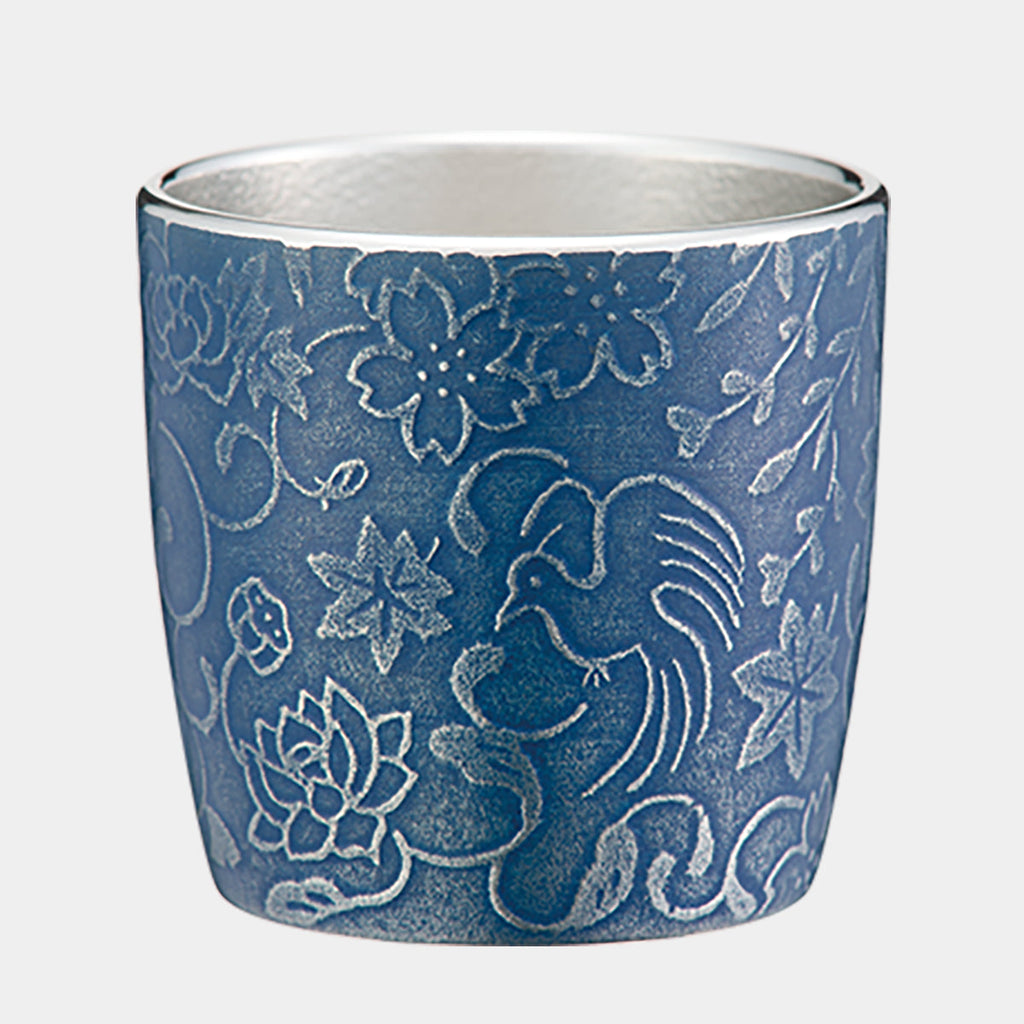 A guinomi featuring a Japanese-inspired design with charming floral and bird motifs!