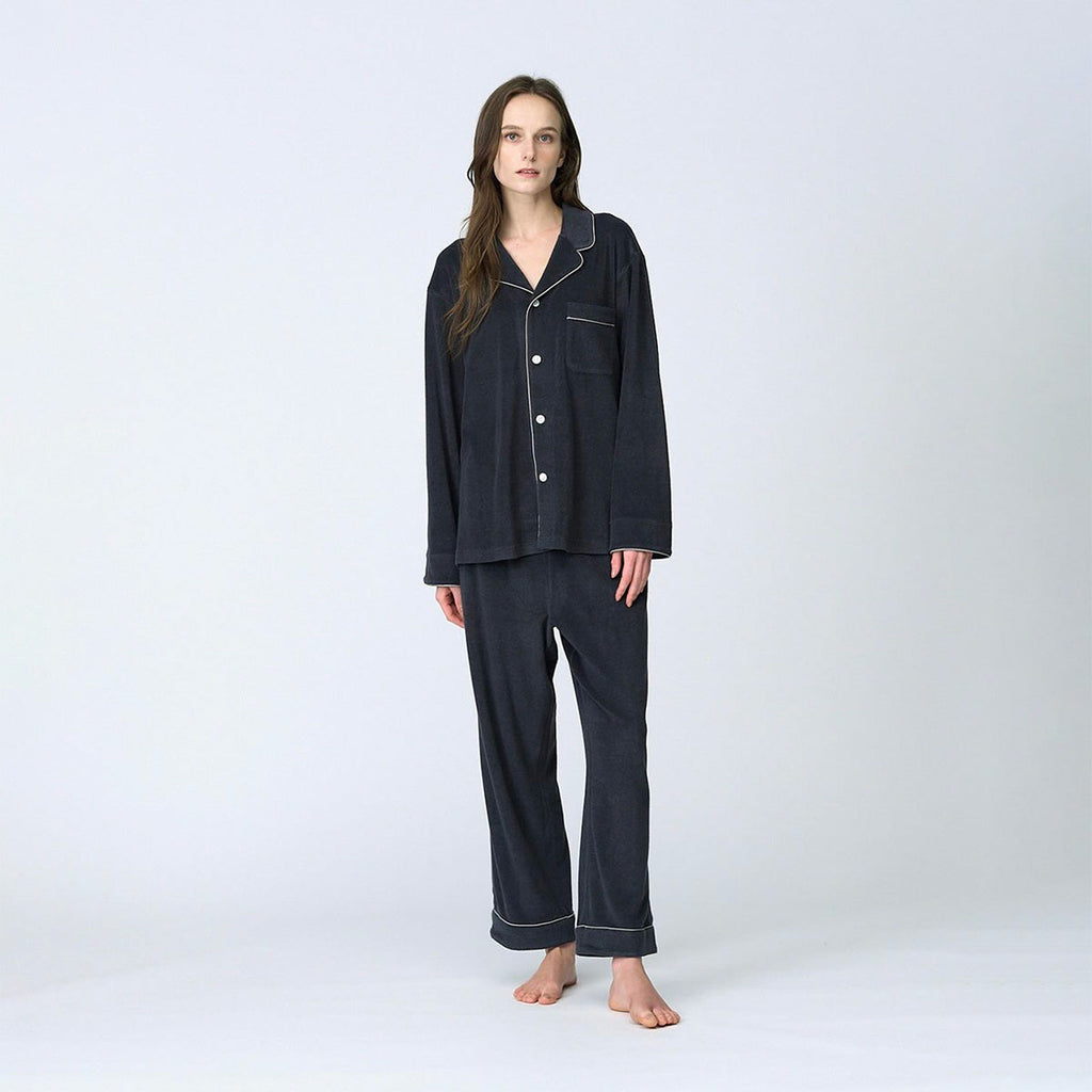 A special pile yarn combining cotton and wool is finished with a knit structure that feels exceptionally soft against the skin, drawing out the warmth unique to natural materials.