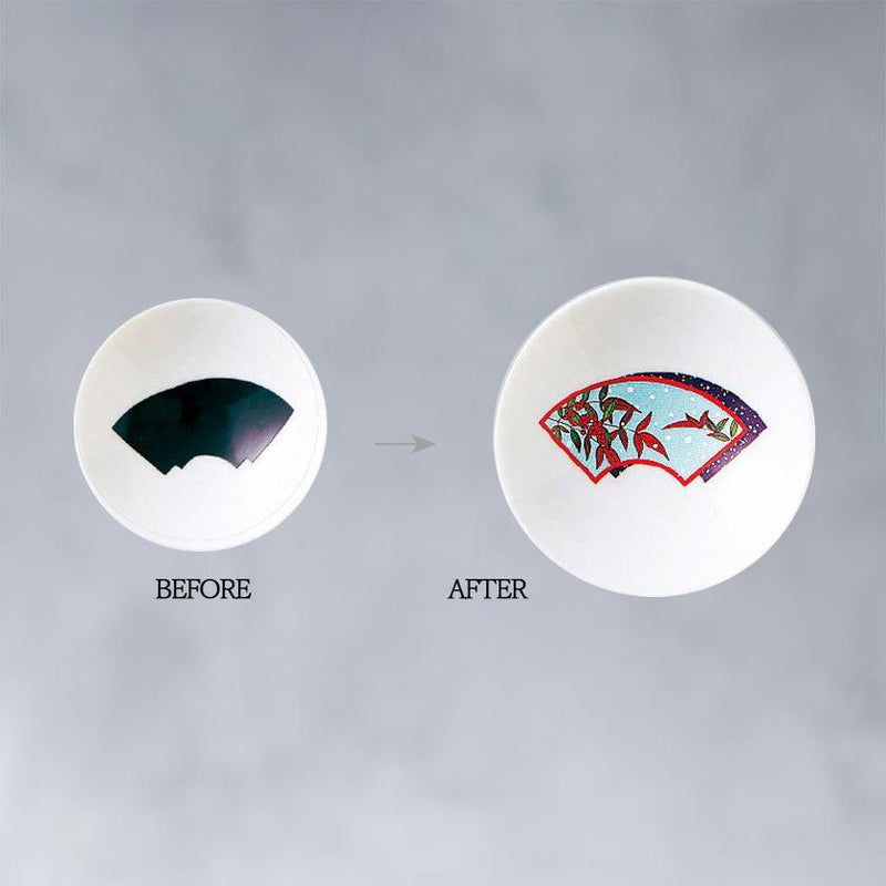 This flat sake cup from the Warmth Series transforms from a black silhouette to a vivid Nanten when filled with a beverage of approximately 45 degrees or higher.