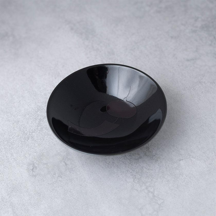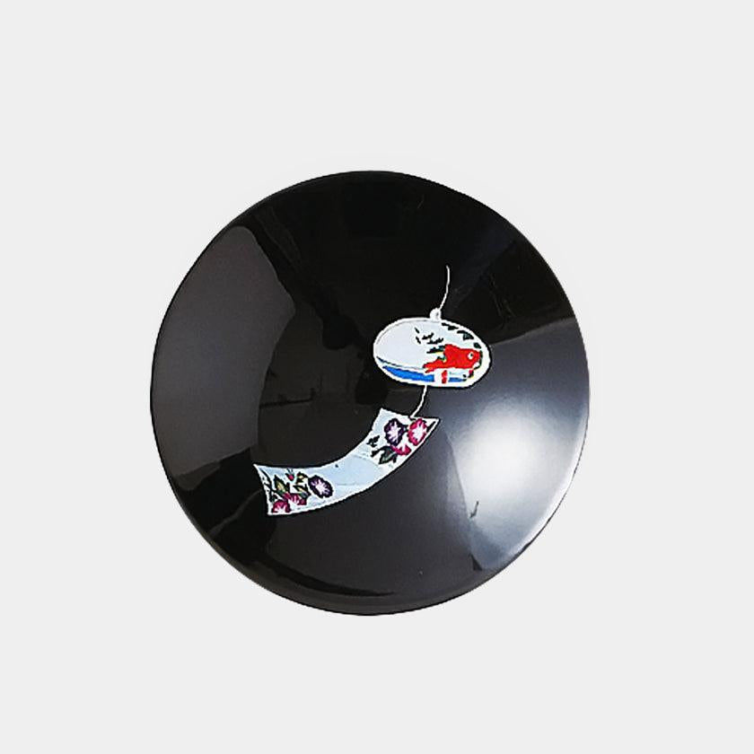 This is a flat sake cup from the Warm Sense series, in which a vivid wind chime appears on a black sake cup when a drink of approximately 45 degrees Celsius or higher is added.
