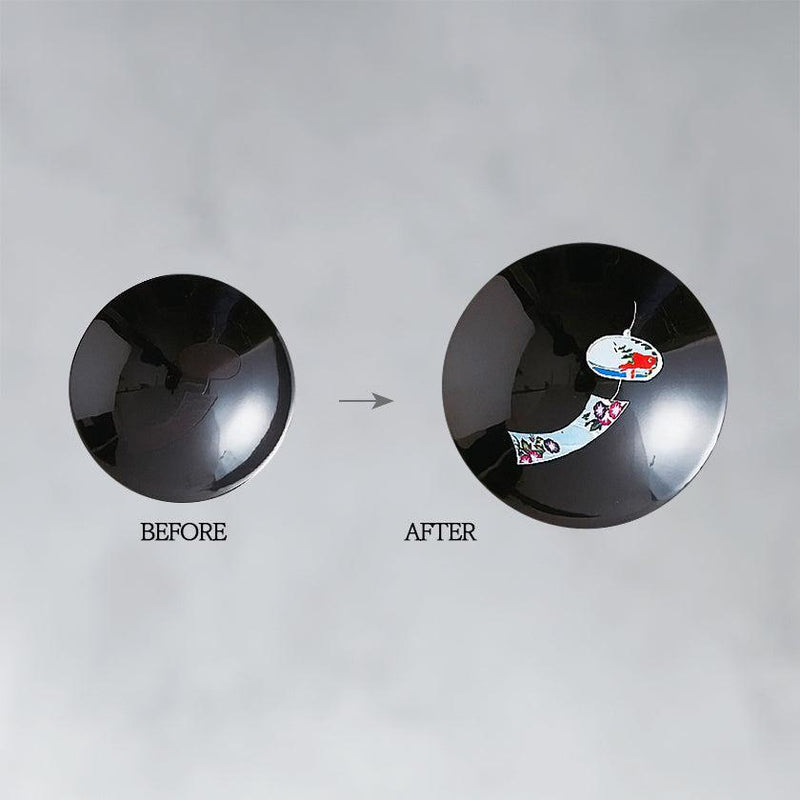 The design appears when hot sake is poured and returns to black when it reaches room temperature, making this sake cup sure to liven up any entertaining occasion.