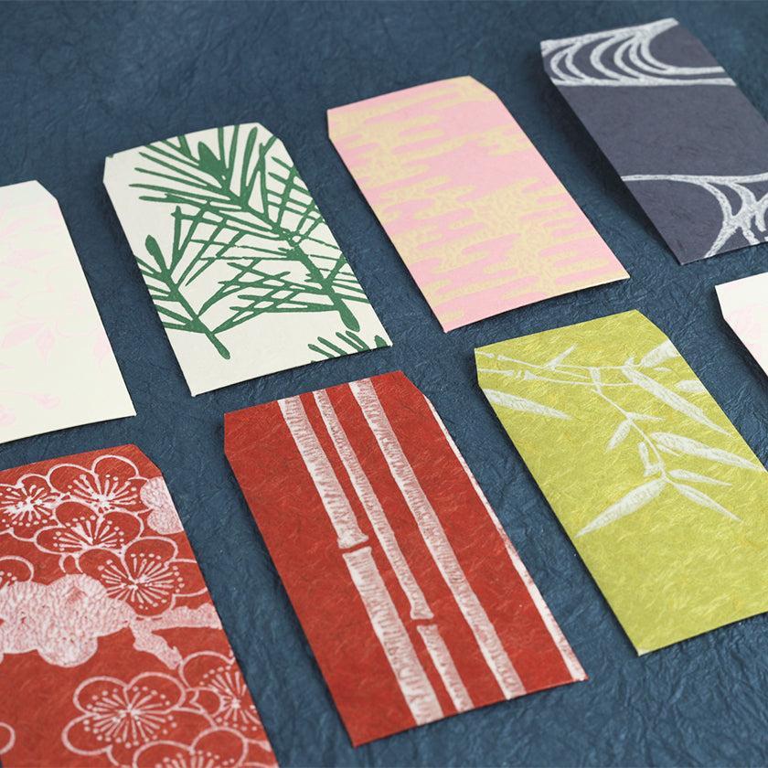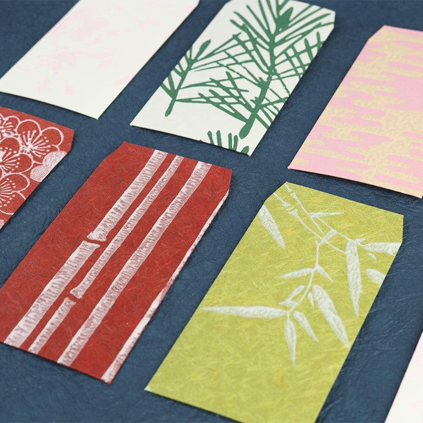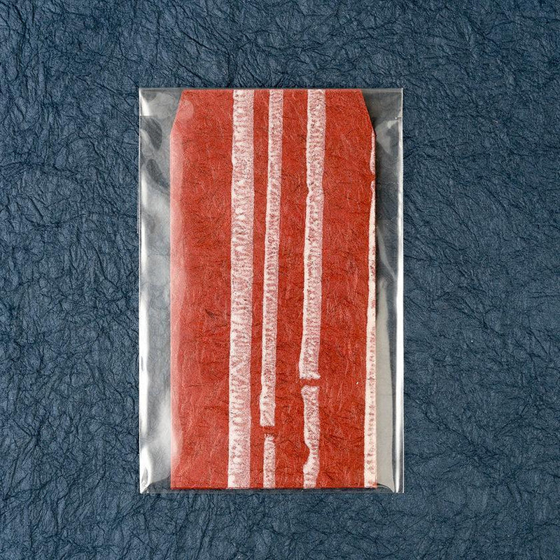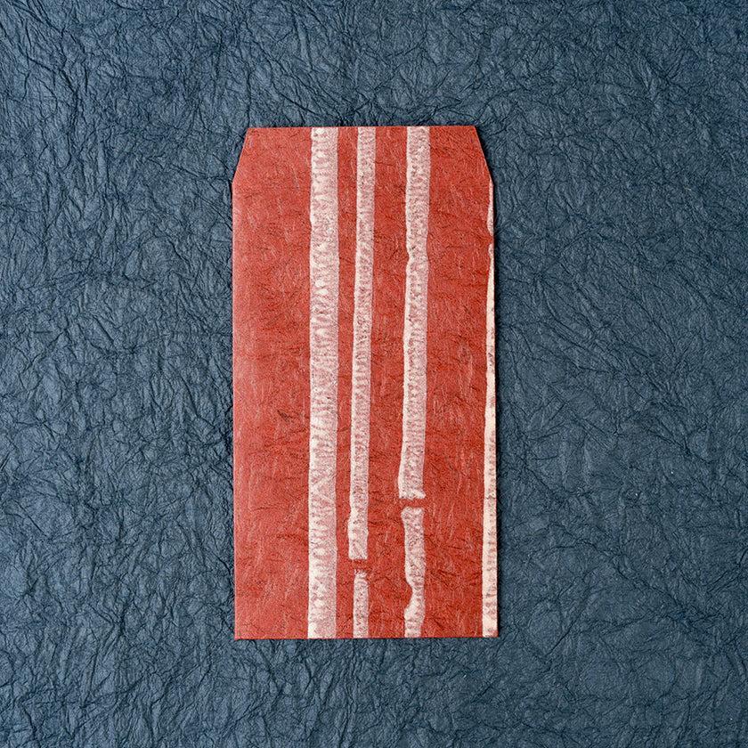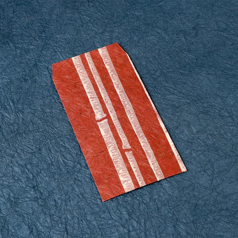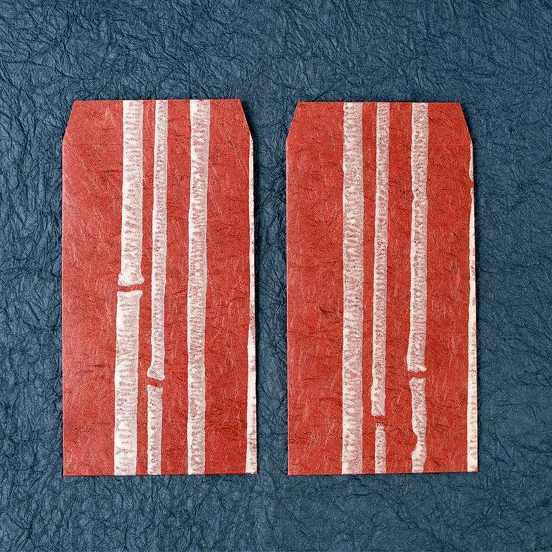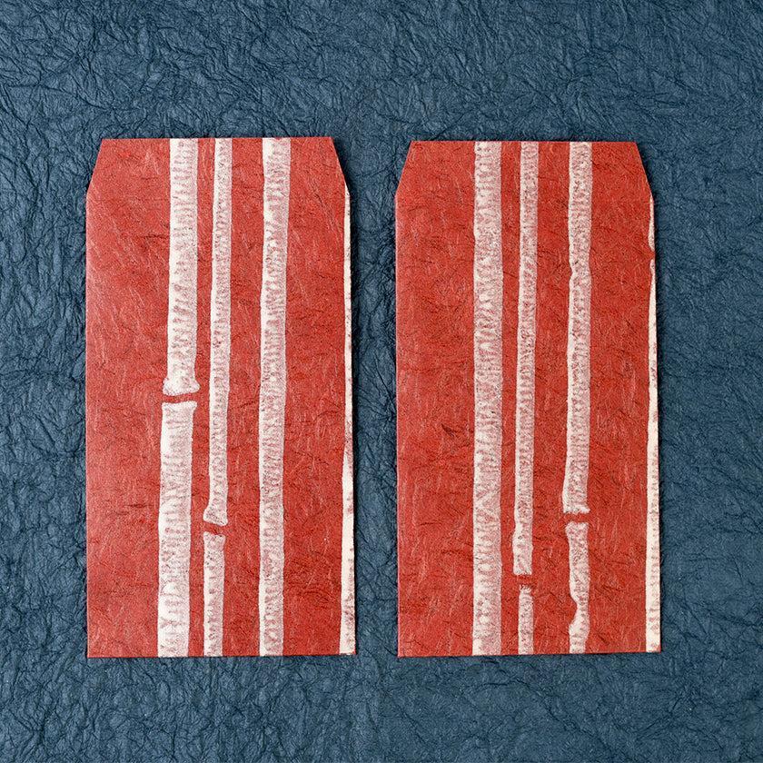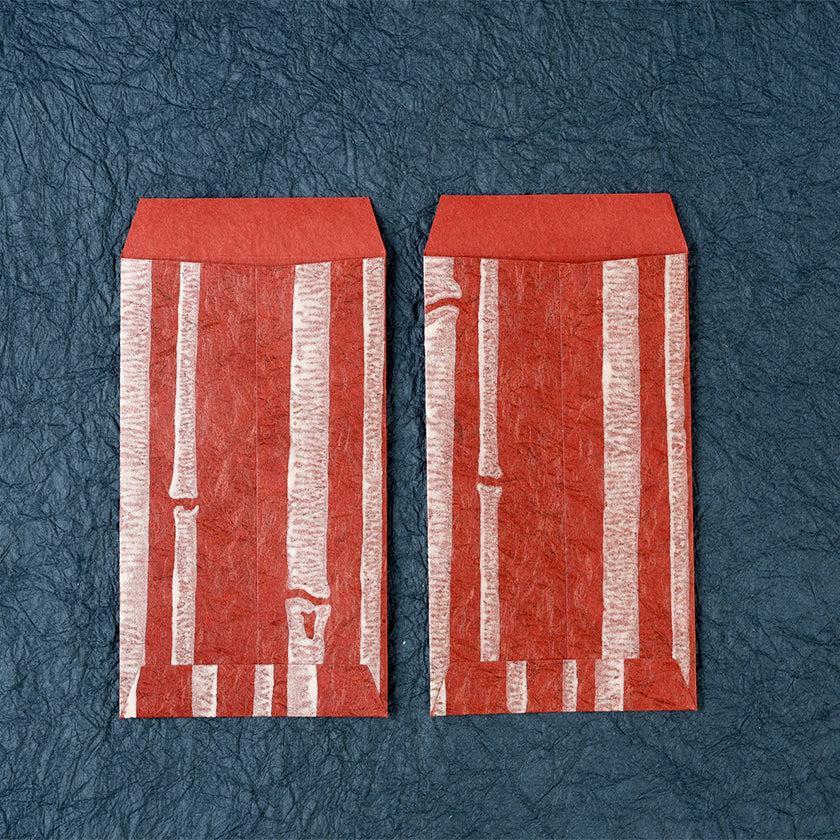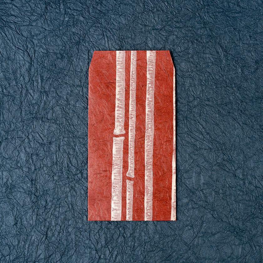 The stylish "Pochi Bag (money envelope)" has a white bamboo design on a red background.