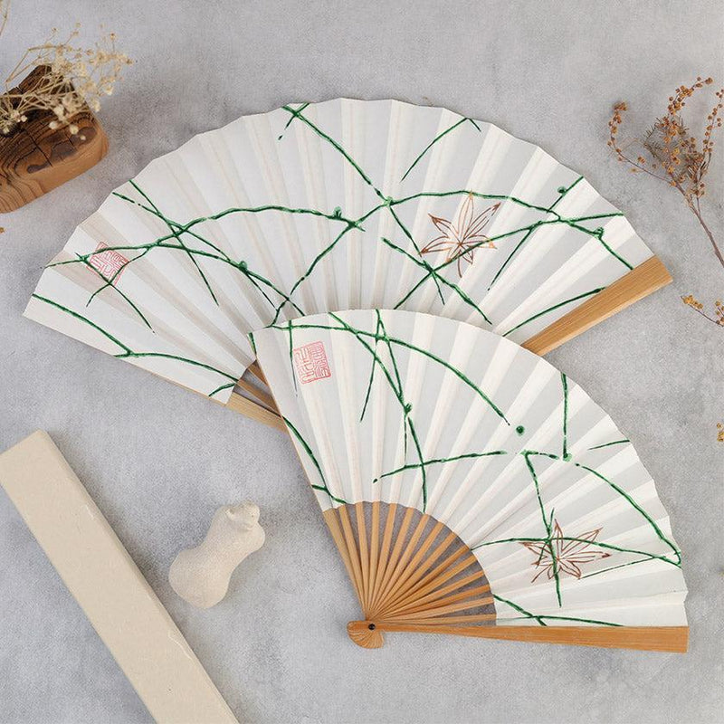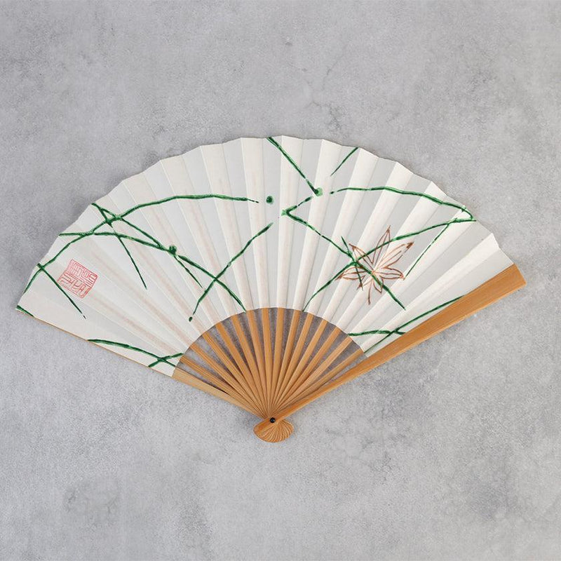 A fan with dayflower and maple patterns, wishing for prosperity and good fortune!
