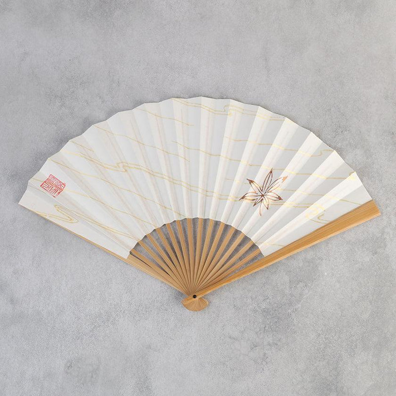 This fan was painted using traditional woodblock printing techniques on Japanese paper.