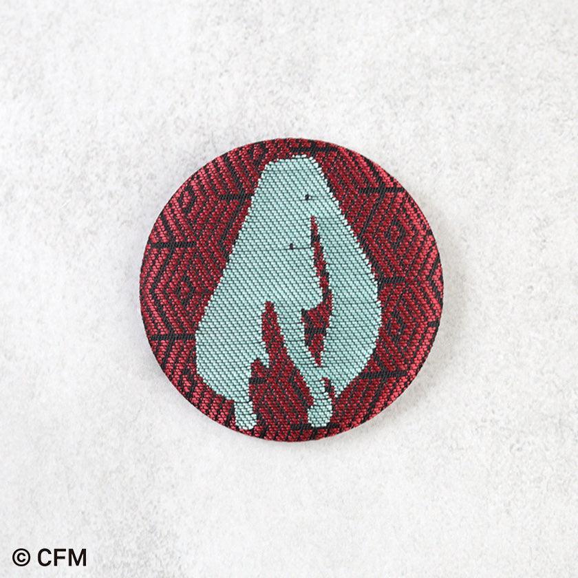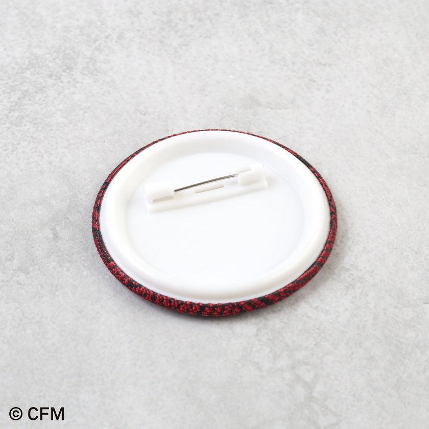 This tin badge was created in collaboration with Rindouya, a workshop specializing in traditional Kyoto Nishijin weaving.
