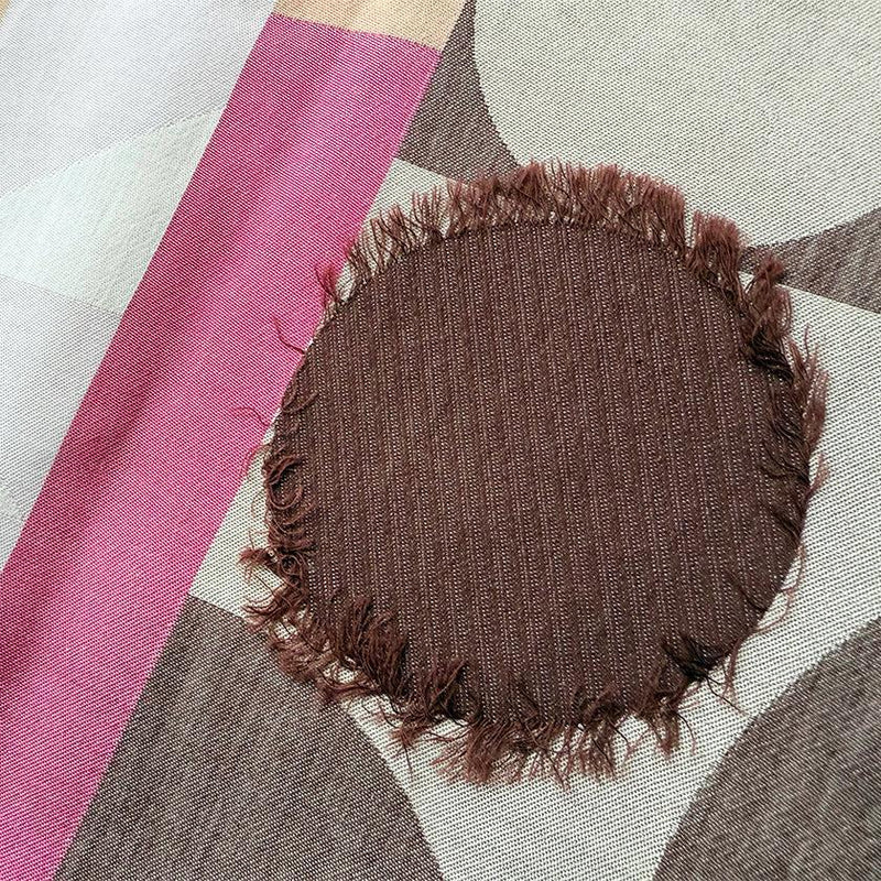 A geometric pattern inspired by textile factory machinery is expressed using the cut jacquard technique.