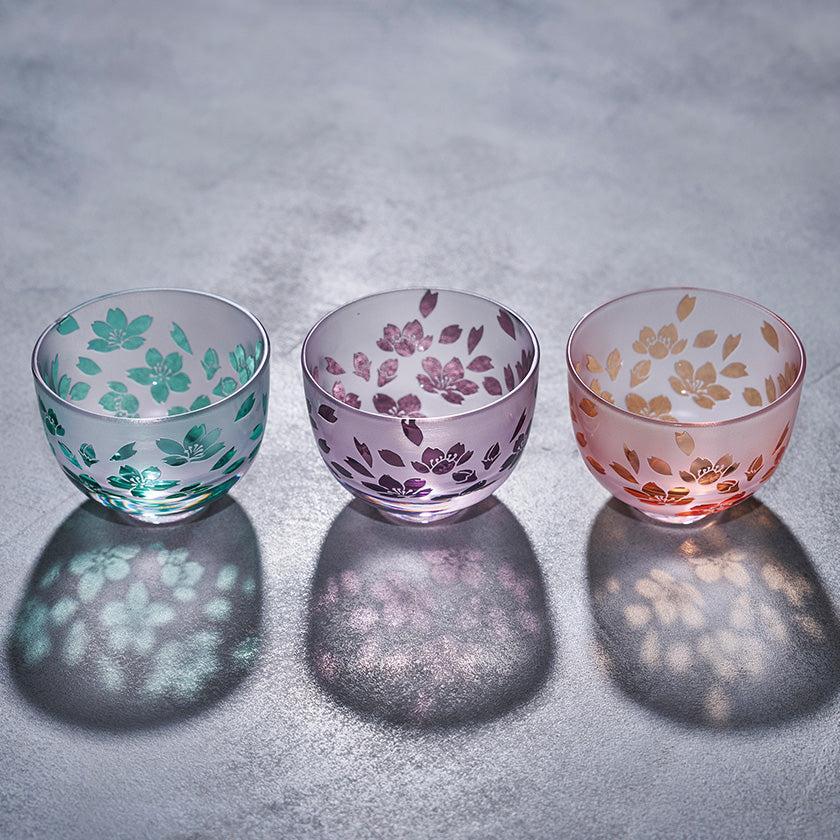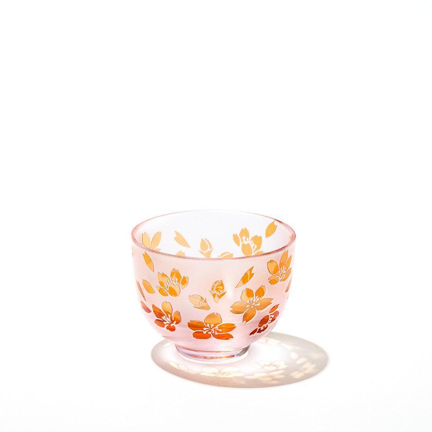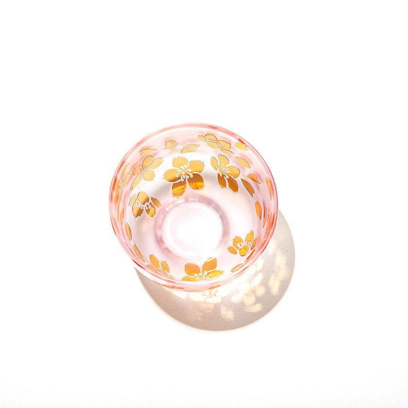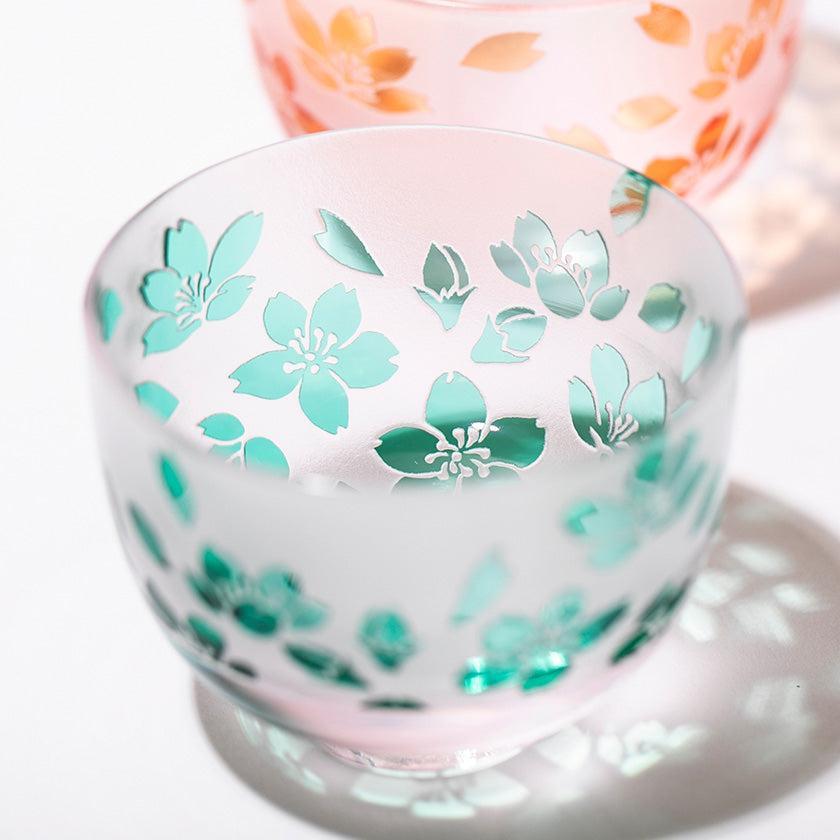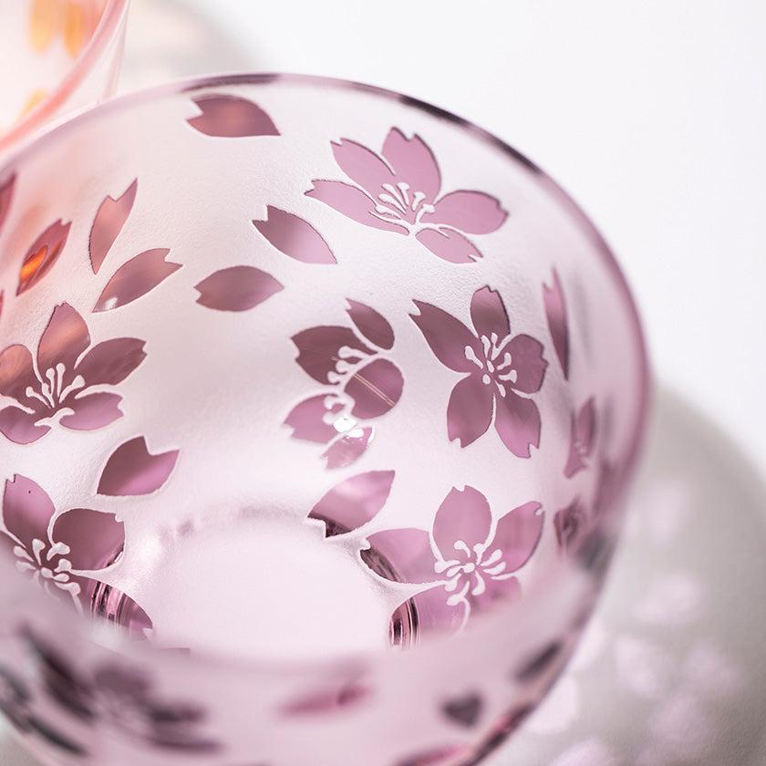 Each piece is individually hand-blown using a two-layer overlay glass technique. The vessel is then carefully hand-engraved, allowing the design to emerge through the contrast of two colors. The pink hue embodies the vibrant cherry blossom series. The gentle color palette and user-friendly design make these vessels enjoyable for all genders and ages.