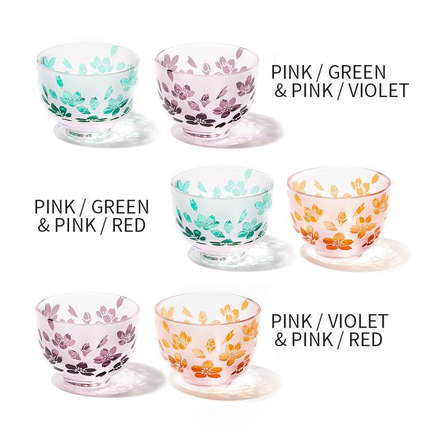 Each piece is individually hand-blown using a two-layer overlay glass technique. The vessel is then carefully hand-engraved, allowing the design to emerge through the contrast of two colors. The pink hue embodies the vibrant cherry blossom series. The gentle color palette and user-friendly design make these vessels enjoyable for all genders and ages.