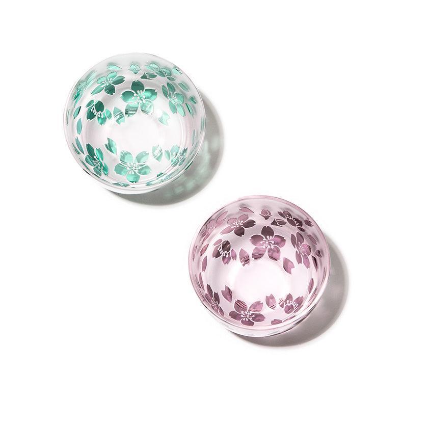 [CHOUKOKU GLASSES (CARVING) YUME GLASS] SAKURA SAKE CUP PAIR (CAPACITY 80ML) | TABLEAU