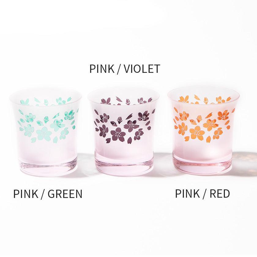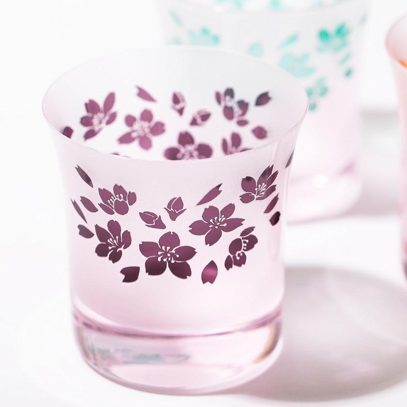 Each piece is individually hand-blown using a two-layer overlay glass technique. The vessel is then carefully hand-engraved, allowing the design to emerge through the contrast of two colors. The pink hue embodies the vibrant cherry blossom series. The gentle color palette and user-friendly design make these vessels enjoyable for all genders and ages.