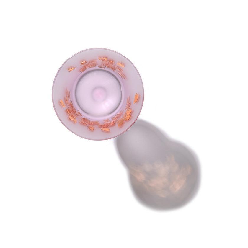Each piece is individually hand-blown using a two-layer overlay glass technique. The vessel is then carefully hand-engraved, allowing the design to emerge through the contrast of two colors. The pink hue embodies the vibrant cherry blossom series. The gentle color palette and user-friendly design make these vessels enjoyable for all genders and ages.