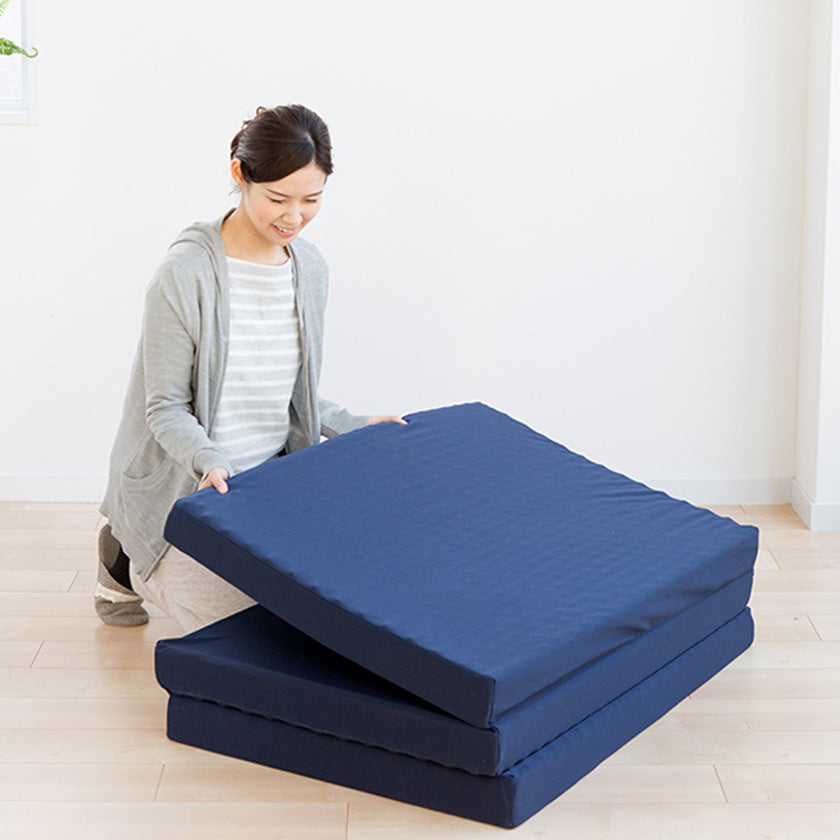 This mattress folds into three sections and is approximately 3.15 inches thick, so you can use it even without a bed frame or futon.