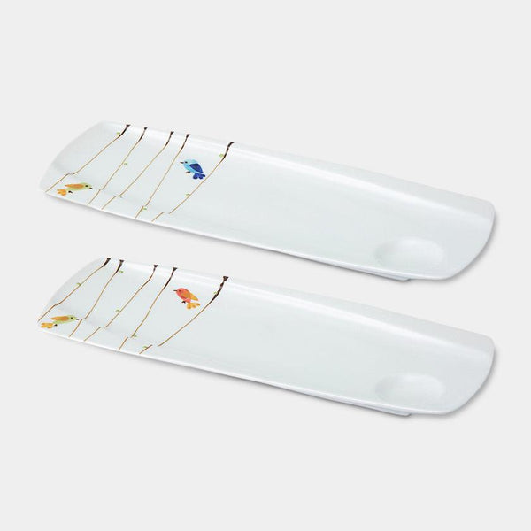 Sushi plates are long and narrow, perfect for lining up a row of freshly formed sushi pieces. They can also be used to serve fish or other long ingredients.