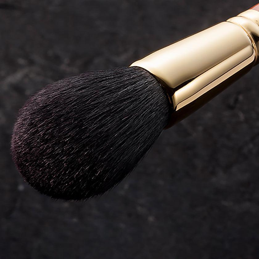 | Material | Hair Material: Fine-tipped bristles, Metal Fittings: Brass (24K gold plating), Handle: African Rosewood (Bubinga) |