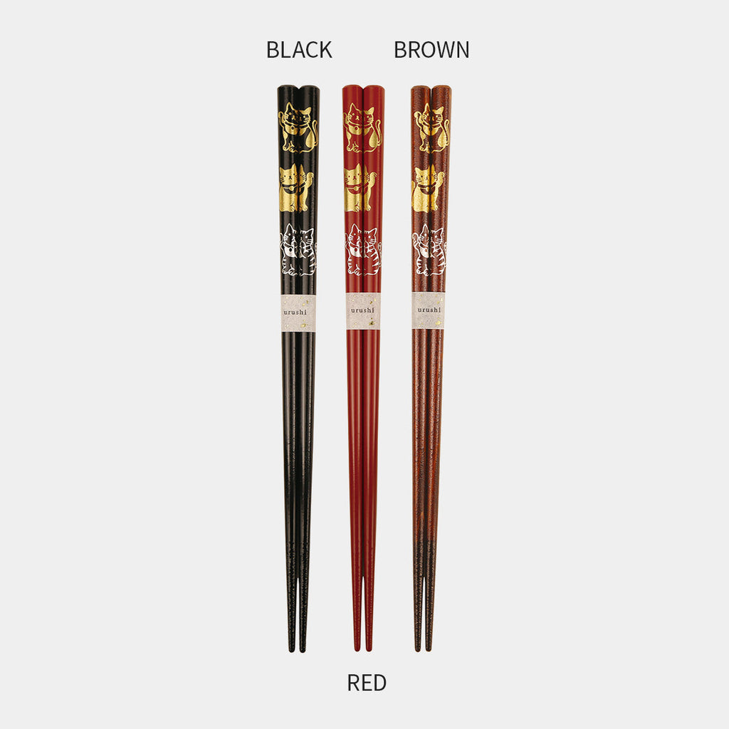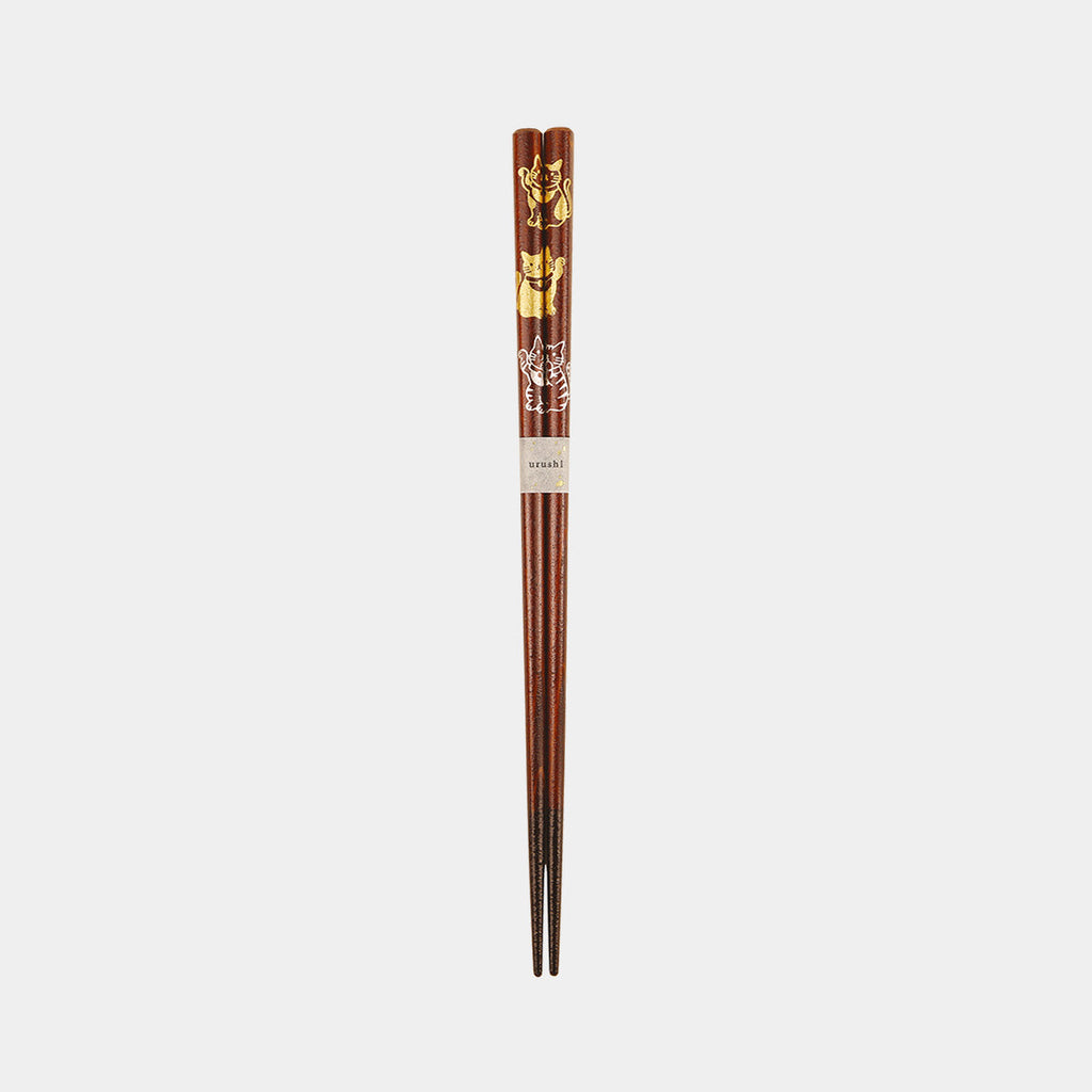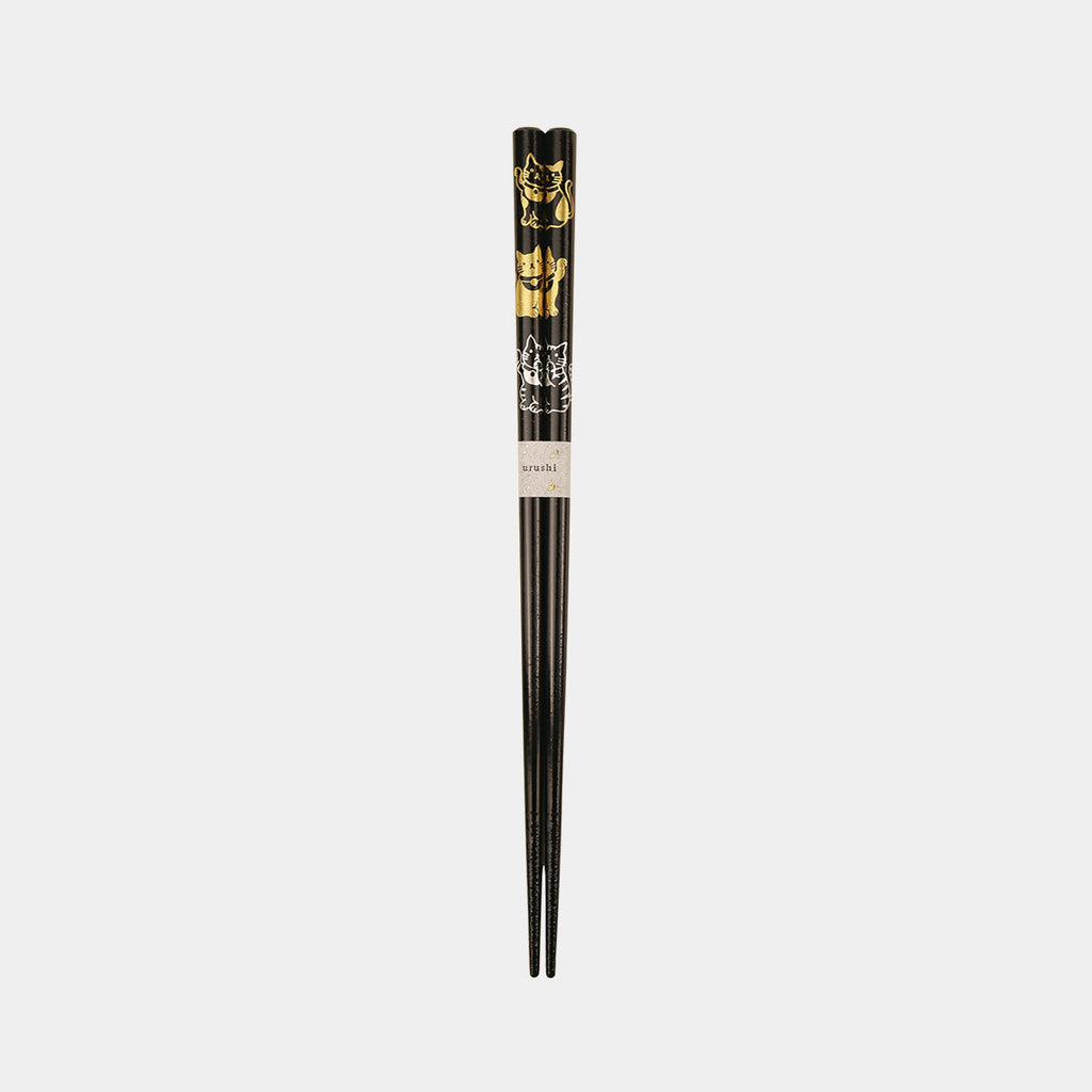 The auspicious "maneki-neko" motif, symbolizing "prosperity in business" and "good fortune," is charmingly rendered in subdued colors and glossy lacquer.
