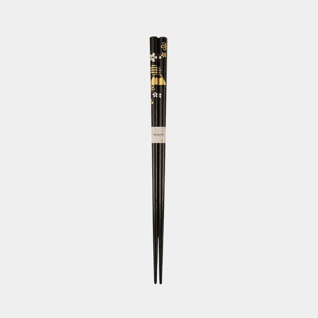 This auspicious design combines Mt. Fuji—symbolizing immortality and prosperity—with cherry blossoms, which represent new beginnings and abundance. It is beautifully rendered in refined tones and finished with lustrous lacquer.