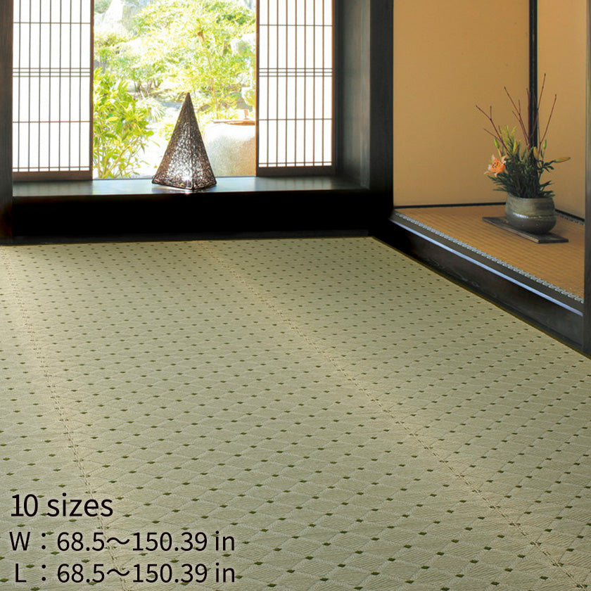 | ขนาด | [ขนาดเอโดมะ (มาตรฐานโตเกียว)] 2 เสื่อทาทามิ: ก68.5 * ย68.5 นิ้ว 3 ทาทามิ: ก68.5 * ย102.76 นิ้ว 4.5-ทาทามิ: W102.76 * L102.76 นิ้ว 6 เสื่อทาทามิ: W102.76 * L138.58 นิ้ว 8 เสื่อทาทามิ: W137.01 * L138.58 นิ้ว [ขนาดฮอนมะ (มาตรฐานเกียวโต)] 2-ทาทามิ: W75.2 * L75.2 นิ้ว 3 ทาทามิ: ก75.2 * ย112.6 นิ้ว 4.5-ทาทามิ: W112.6 * L112.6 นิ้ว 6 เสื่อทาทามิ: W112.6 * L150.39 นิ้ว 8 เสื่อทาทามิ: W150.39 * L150.39 นิ้ว ([ขนาดเอโดมะ (มาตรฐานโตเกียว)] 2-ทาทามิ: W174 * L174 3-ทาทามิ: W174 * L261 4.5-ทาทามิ: W261 * L261 6-ทาทามิ: W261 * 352 8-ทาทามิ: W348 * L352 [ขนาดฮอนมะ (มาตรฐานเกียวโต)] 2-ทาทามิ: W191 * L191 3-ทาทามิ: W191 * L286 4.5-ทาทามิ: W286 * L286 6-ทาทามิ: W286 * L382 8-ทาทามิ: W382 * L382cm) |